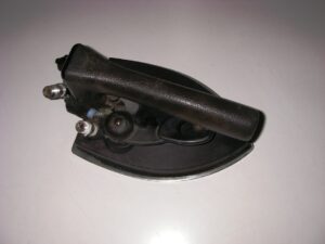 写真は当店で使い古したアイロンです。いろんな種類の物が何台も残してありますが、捨てることができません。そのうち骨董的価値が出るかも(笑)。今は艶消しのブラックが流行です。